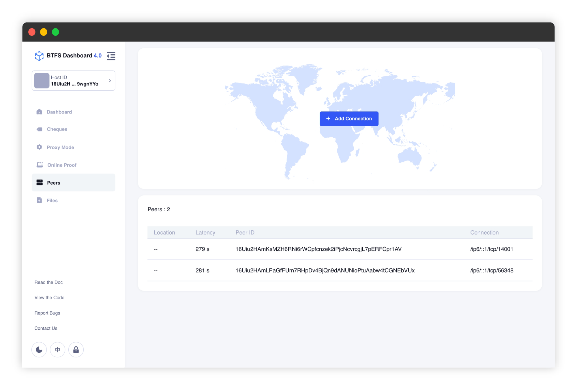- Local Access: After the node is up and running, users can access the BTFS Dashboard for local nodes via localhost:5001/dashboard directly.